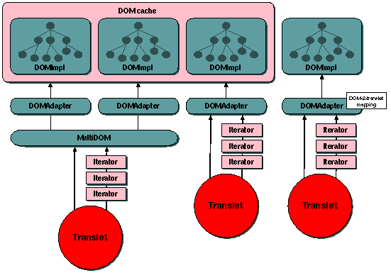 The internal DOM gives the translet access to the XML document(s) it has