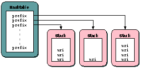 Hashtable (using the prefix), and a push() of the URI onto the